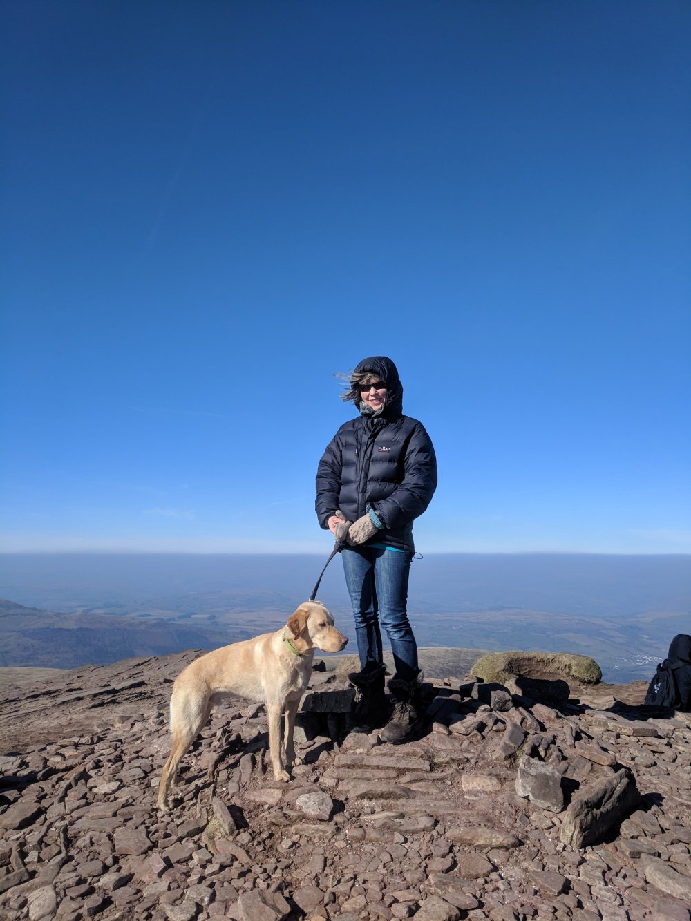 I’m a fair weather climber/cyclist/walker/runner nowadays so hide in climbing walls during the winter. As this doesn’t make for good blogging here’s my wife on Pen y Fan on that really nice weekend we had – remember that?