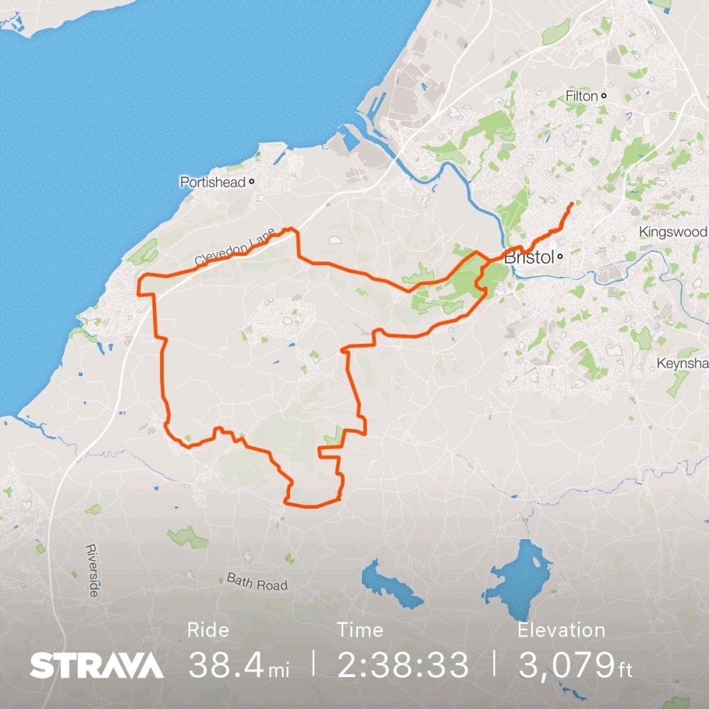 Lovely little 40 miler. Getting into the season proper now. Generally slow but 4 big hills – what about that Cleeve hill and the descent into Wrington! An amazing apex. Highly recommended.