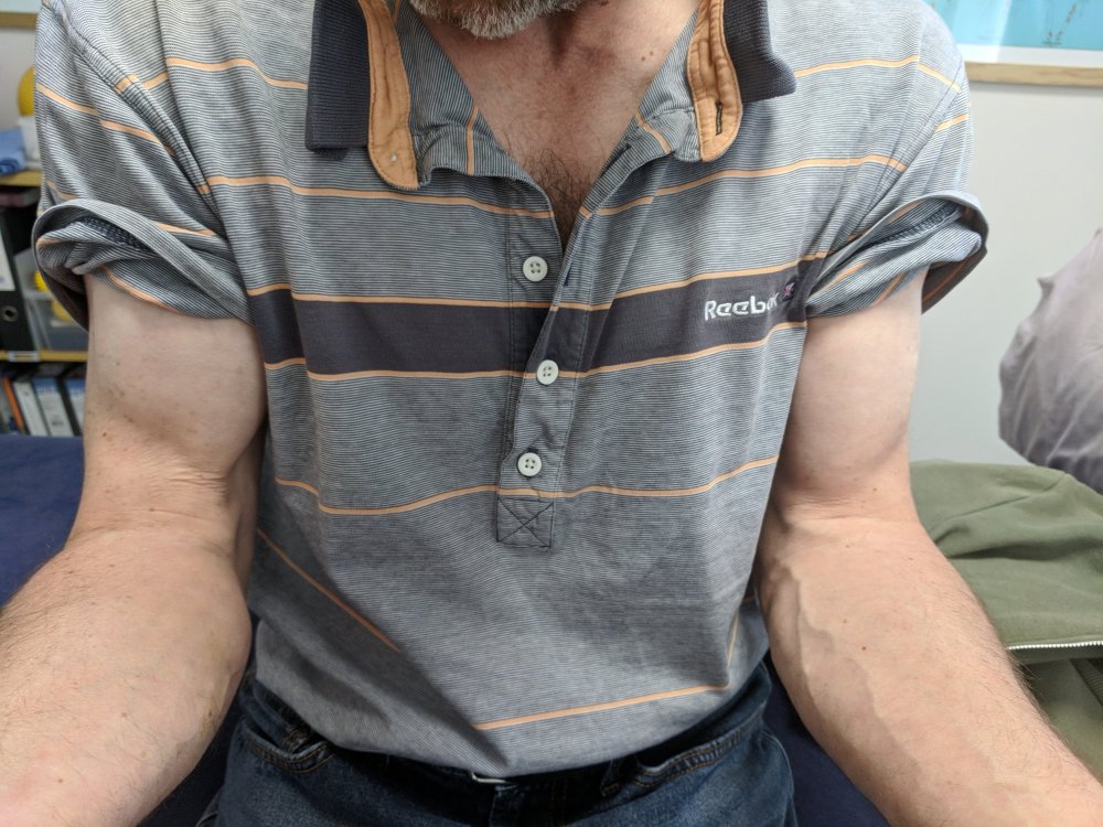 Injury of the week Posted by dannyjohnbrown on June 13, 2018 Well this is a doozy. A friend and fellow climber had this happen to him whilst doing push ups – can you tell what it is. Clue – I couldn’t do anything to help