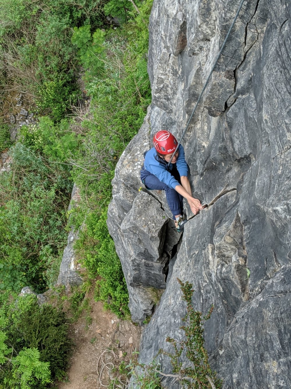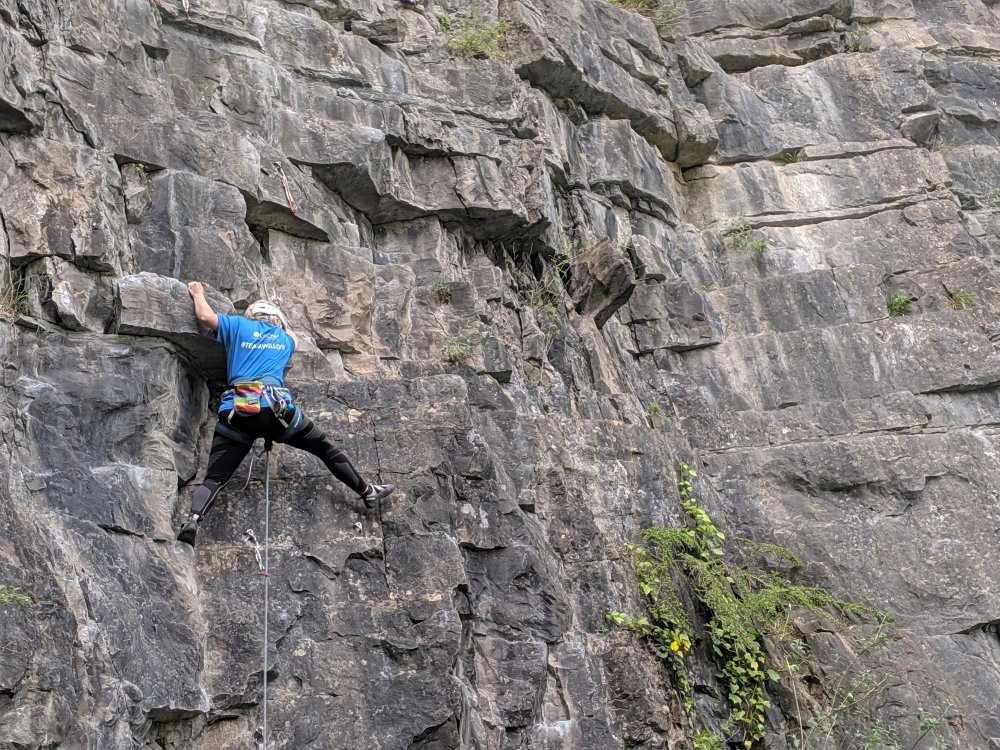 Not so this weekend. Well, it was fun but not easy. All 6 climbers were of different skill levels but all of them learned how to set up and run a top rope, abseil with self protection, they ALL led at least one sport route and they all led their first trad route, placing their own gear and setting up their own belay AND did they’re own FREE SOLO (sort of – we climbed out). Ok, I admit their was a lot of help from me with an awful lot of running around, abseiling and jugging and general micro-managing and TBH I am a little bit knackered but it was well worth it.