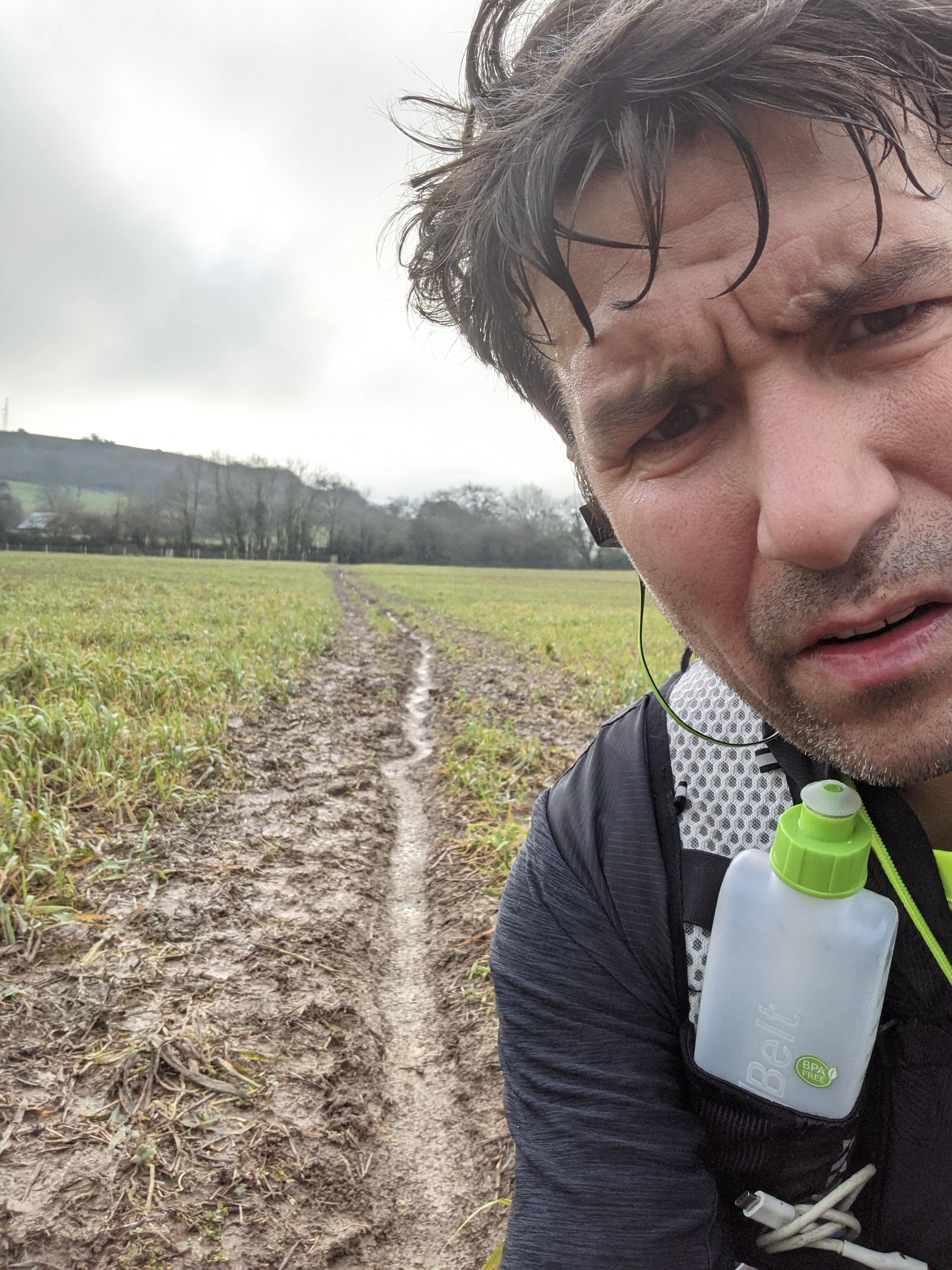 The pictures below are on the way up to Dundry Hill – the only real hill on the Green Man. The mud is shin deep and slippery as hell – the Salomon Speedcross 5 GTX’s are definitely the best trainers I have EVER worn for muddy terrain.