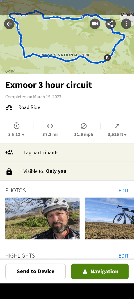 An excellent Mother’s Day was had with a quick 40 miles around Exmoor on the bike. Very glad I had the slightly chunkier tyres afforded by the gravel bike as some of the roads were pretty tricky with gnarly descents quite a lot of detritus.